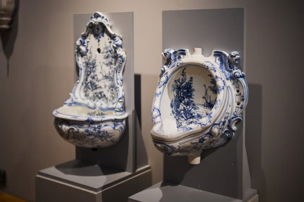 Na ekspozycji znalazły się różnorodne formy i typy dawnych urządzeń toaletowych. Od klasycznych nocników i tzw. kaczek, przez fotele toaletowe, aż po baseny, zdobione muszle toaletowe, umywalki oraz charakterystyczne “pedały” z górnopłukiem. Zgromadzone przedmioty pokazują, jak przez wieki zmieniała się funkcja i wygląd akcesoriów łazienkowych, które dawniej stanowiły nieodłączny element wyposażenia domów.
